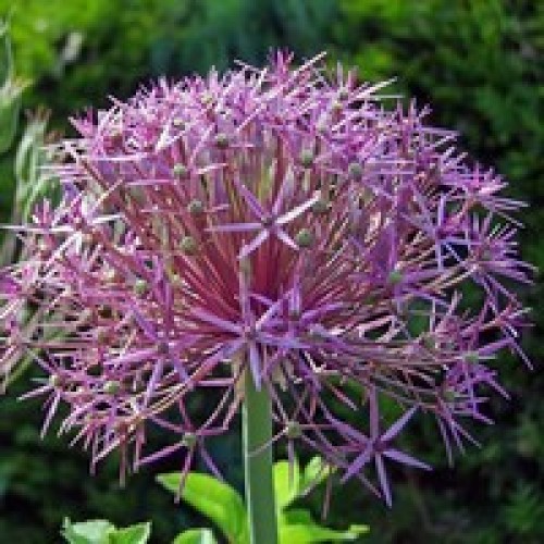 Allium Christophii is a perennial that grows to 50cm, with strap-shaped, slightly glaucous leaves withering by flowering time. Star-shaped, rosy-violet flowers are born in globose heads as big as 20cm in width. Flowers in early summer are then followed by attractive seed-heads. Allium are bulbous herbaceous perennials with a strong onion or garlic scent, linear, strap-shaped or cylindrical basal leaves and star-shaped or bell-shaped flowers in an umbel on a leafless stem.
