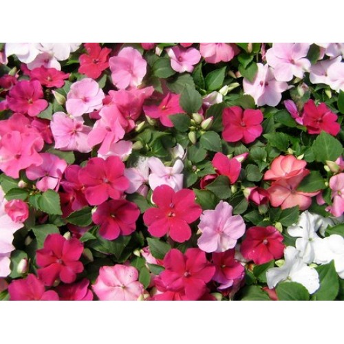 Impatiens Dwarf Baby Series Mix is a fantastic dwarf variety of Busy Lizzie that will grow to just 25cm.  Producing a colourful display of single flowers in various colours.   A very popular hanging basket variety and an excellent bedding variety.
